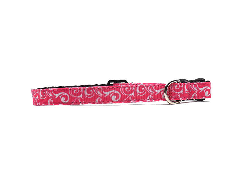 Cat Collar - 'The Swirly Girl - Pink' - Damask Style Breakaway Collar